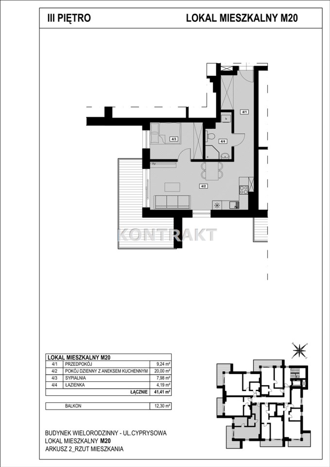 - pokój z aneksem kuchennym 20,00 m2,