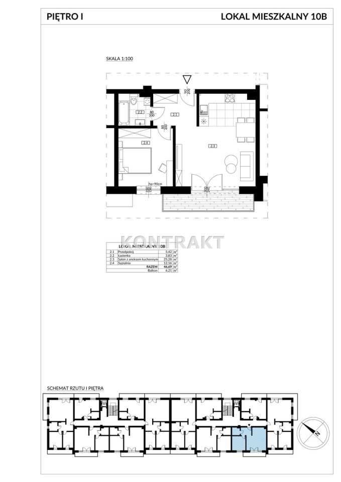 salon z aneksem kuchennym – 25,28 m²