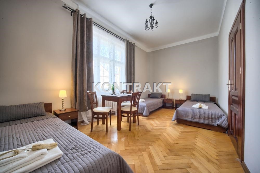 Mieszkanie zajmuje pierwsze piętro kamienicy, a dodatkowo do dyspozycji kupującego pozostają piwnica i poddasze o łącznej powierzchni 194 m². Lokal można wykorzystać jako komfortowe mieszkanie rodzinne lub prowadzić wynajem krótkoterminowy pokoi w systemach rezerwacyjnych (np. Booking.com), co stanowi dodatkowe źródło dochodu.